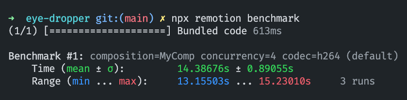 The new npx remotion benchmark helps you compare different render configurations and find out which one is the fastest. Currently, you can compare different codecs, compositions and concurrency values. Each configuration is run multiple times in order to increase confidence in the results.